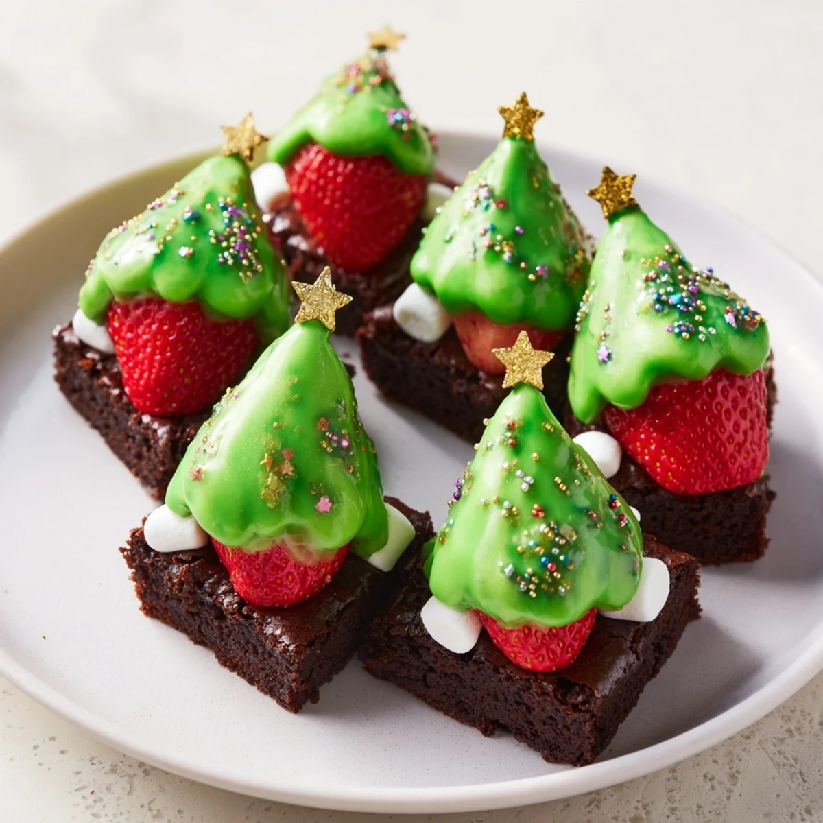 Save Festive, fudgy brownie bites topped with vibrant green frosting and sprinkles, these quick Christmas tree hats are perfect for holiday gatherings or as a fun project with kids.