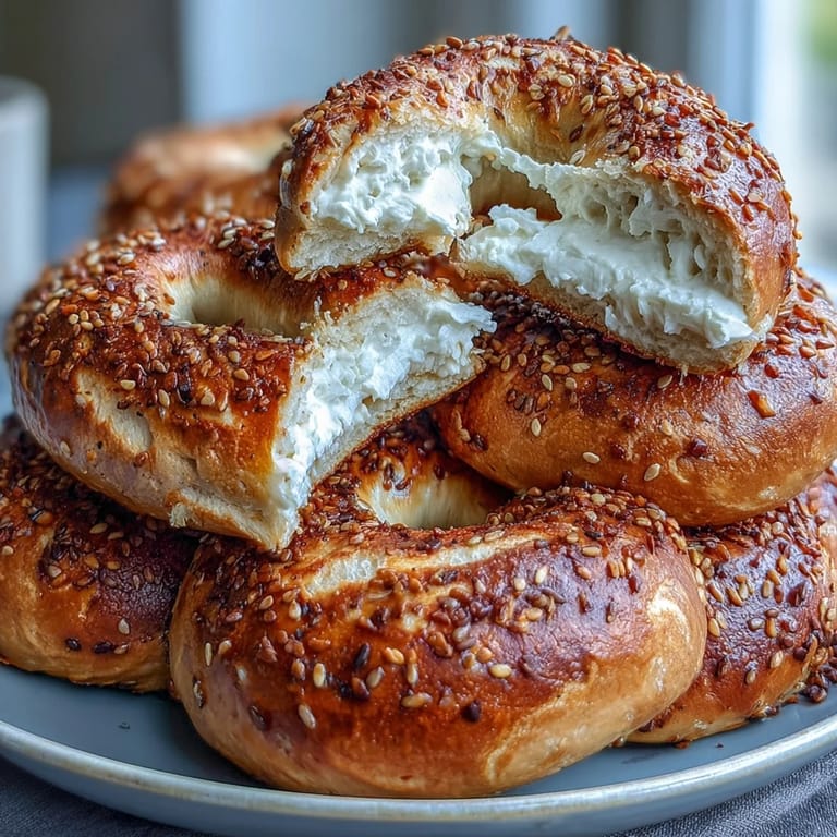 Save I stumbled onto these bagels completely by accident while hunting through my fridge on a lazy Sunday morning, staring at a container of cottage cheese that was about to expire. Something clicked when I realized cottage cheese could become dough, and twenty minutes later I was pulling golden, chewy bagels from the oven. My kitchen smelled like toasted flour and butter, and my roommate wandered in asking what bakery I'd raided. The magic of it hit me then, standing there with a warm bagel in hand, that sometimes the simplest ingredients do the most surprising things.