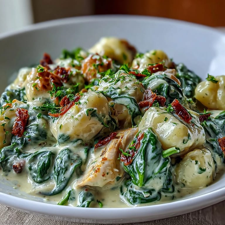 Save There's something magical about watching gnocchi bob to the surface of boiling water—it feels like a small kitchen victory every time. My sister called one Tuesday evening asking what I was making for dinner, and when I mentioned this creamy spinach and Parmesan gnocchi with chicken, she invited herself over within the hour. What started as a simple weeknight meal became this cherished thing we make together now, laughing at how the cream sauce smells like an Italian restaurant decided to take up residence in my kitchen.