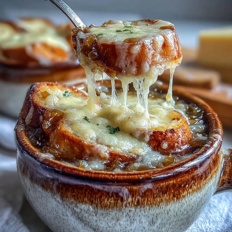 Save There's something about standing over a pot of onions as they transform from sharp and pungent to something almost sweet and amber-colored that makes you understand why the French built an entire soup around them. I discovered this soup not in Paris, but in my own kitchen on a cold November evening when I had little more than onions, some broth, and curiosity driving me forward. What started as an experiment in patience became the kind of dish you crave when the weather turns and you need something that feels both comforting and sophisticated at once.