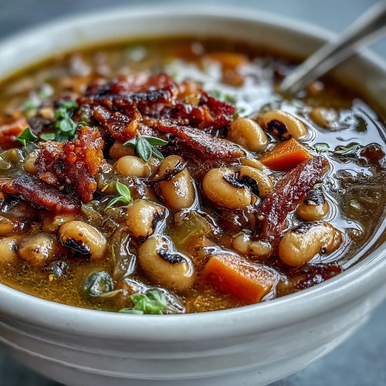 Save My grandmother used to say that eating black-eyed peas on New Year's Day wasn't just tradition, it was insurance. She'd make this soup every January first without fail, and honestly, I started making it not because I believed in the luck, but because the smell of it simmering on the stove felt like home. The combination of smoky ham, creamy peas, and that warm broth became my own kitchen ritual, whether I needed fortune or just comfort.