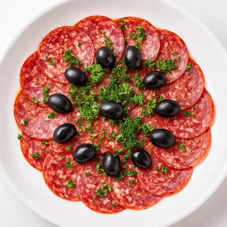 Save A quick and savory appetizer featuring zesty pepperoni slices paired with briny olive halvesβperfect for parties or casual snacking.