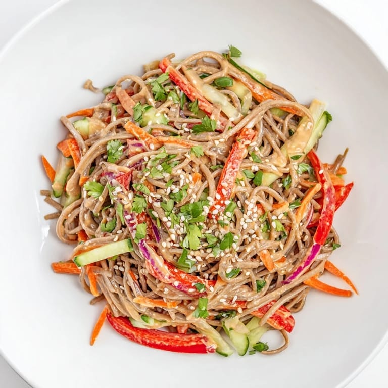 Save I discovered soba noodles on a sweltering afternoon when my neighbor brought over a container of this chilled salad, claiming it was the only thing keeping her sane through a heatwave. One bite and I understood—the nutty buckwheat, the sesame-peanut dressing with just enough ginger heat, the snap of raw vegetables. It's become my go-to when I want something that feels both indulgent and impossibly light.