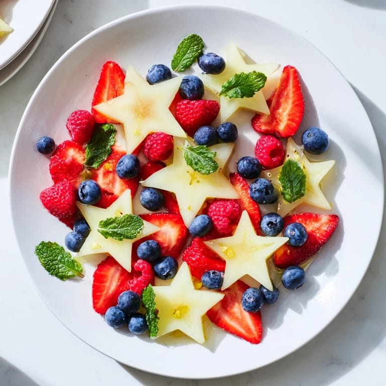 - Fruits: 2 ripe starfruits (carambolas), sliced crosswise into stars, 1 cup fresh strawberries, hulled and halved, 1 cup fresh blueberries, 1 cup fresh raspberries