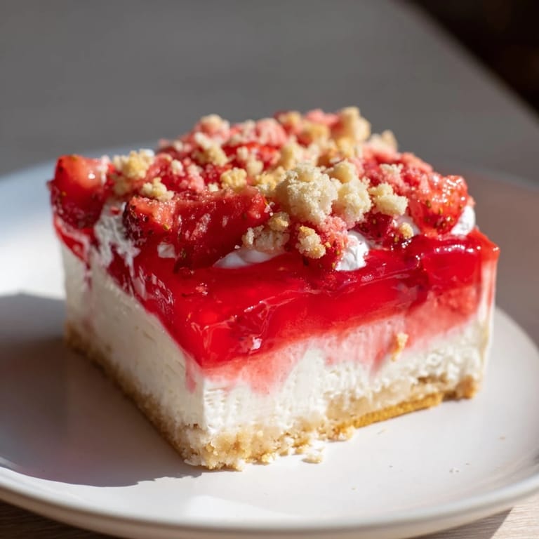 Save A luscious dessert that marries creamy cheesecake with the nostalgic flavors of strawberry shortcake, topped with a vibrant strawberry layer and a crunchy cookie crumble.