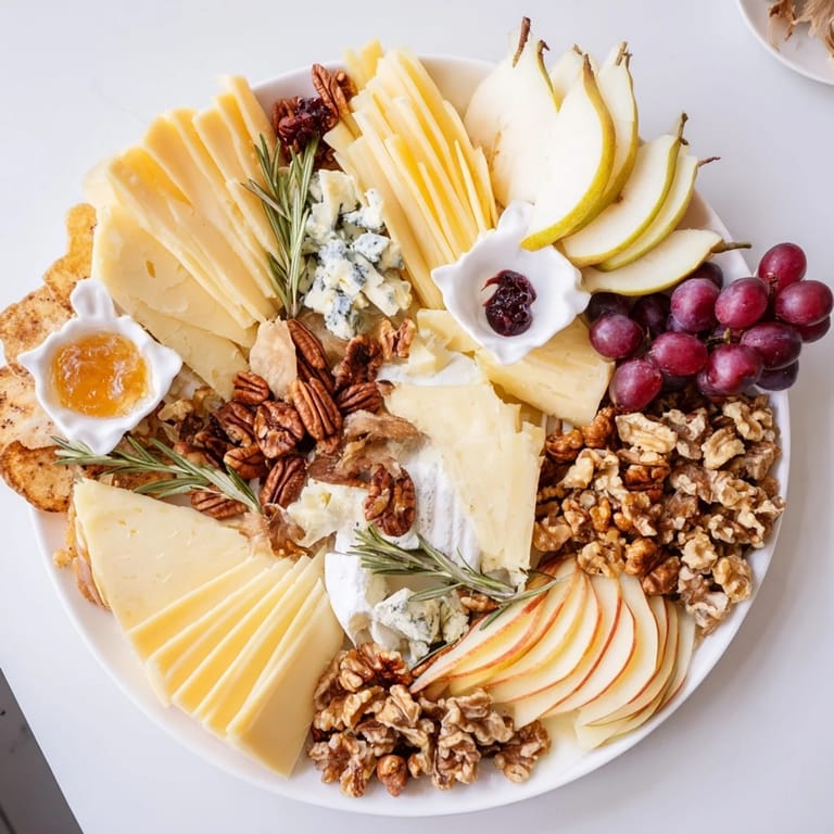 - Cheeses: 120 g aged cheddar sliced, 120 g blue cheese crumbled, 120 g Gruyère sliced, 120 g triple-cream brie sliced